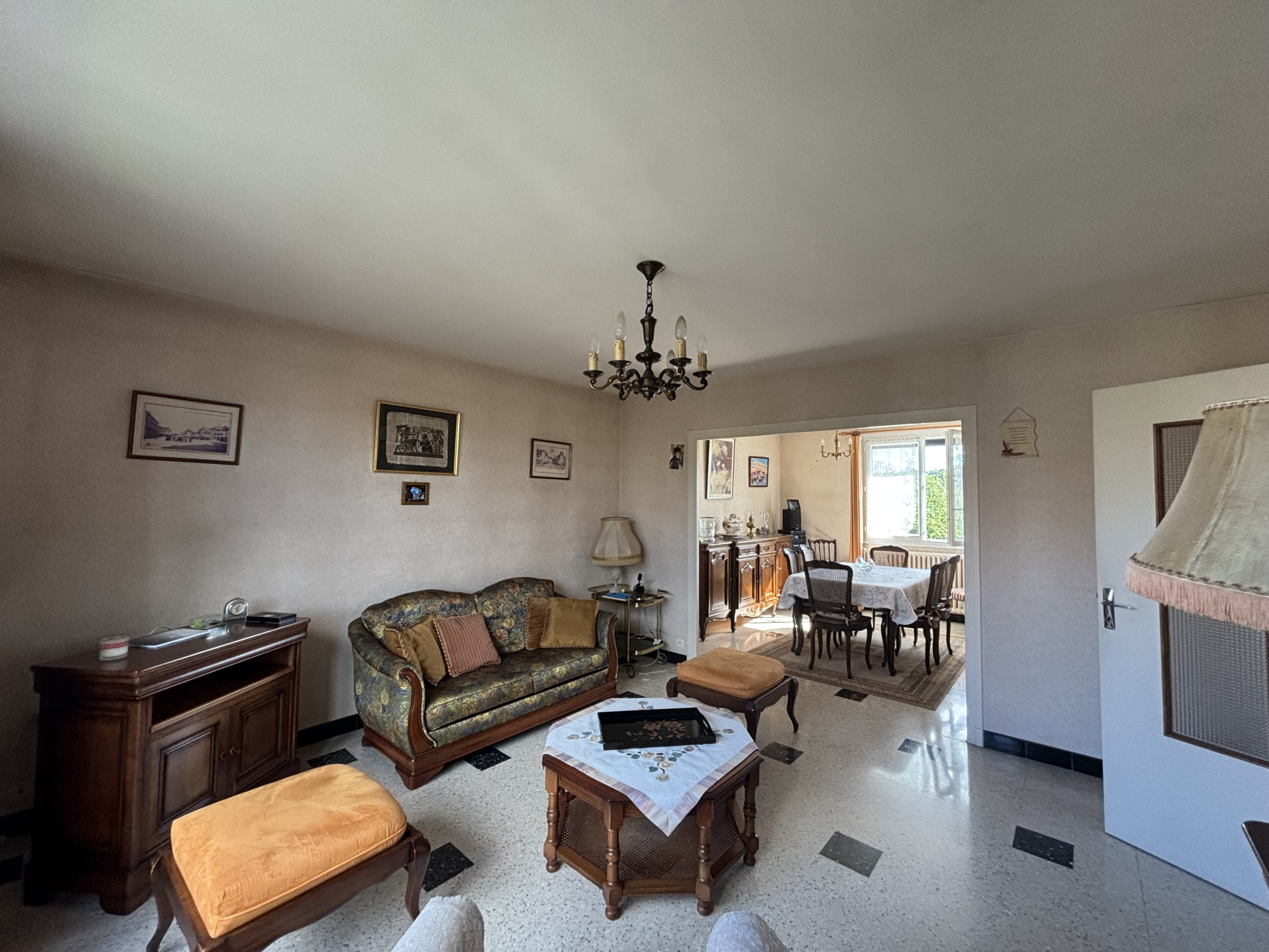 CUSSET - Proche centre-ville et quartier Stade Jean Moulin - Pavillon élevé sur sous-sol avec terrain de 793m². Pavillon élevé sur sous-sol hors sol complet comprenant en rez-de-chaussée: un hall d'entrée desservant un double séjour traversant, une cuisine donnant sur une terrasse, dégagement, deux chambres, une salle d'eau et WC indépendant. Au rez-de-jardin: une chambre et un bureau, Chaufferie avec espace sanitaire (douche et WC), dégagement, une cave et un garage. Viennent compléter l'ensemble un garage secondaire indépendant de 31.50m², un abris de jardin cour gravillonée et terrain clos autour. Travaux de modernisation à prévoir. Double vitrage PVC pour partie DPE EN COURS DE REALISATION