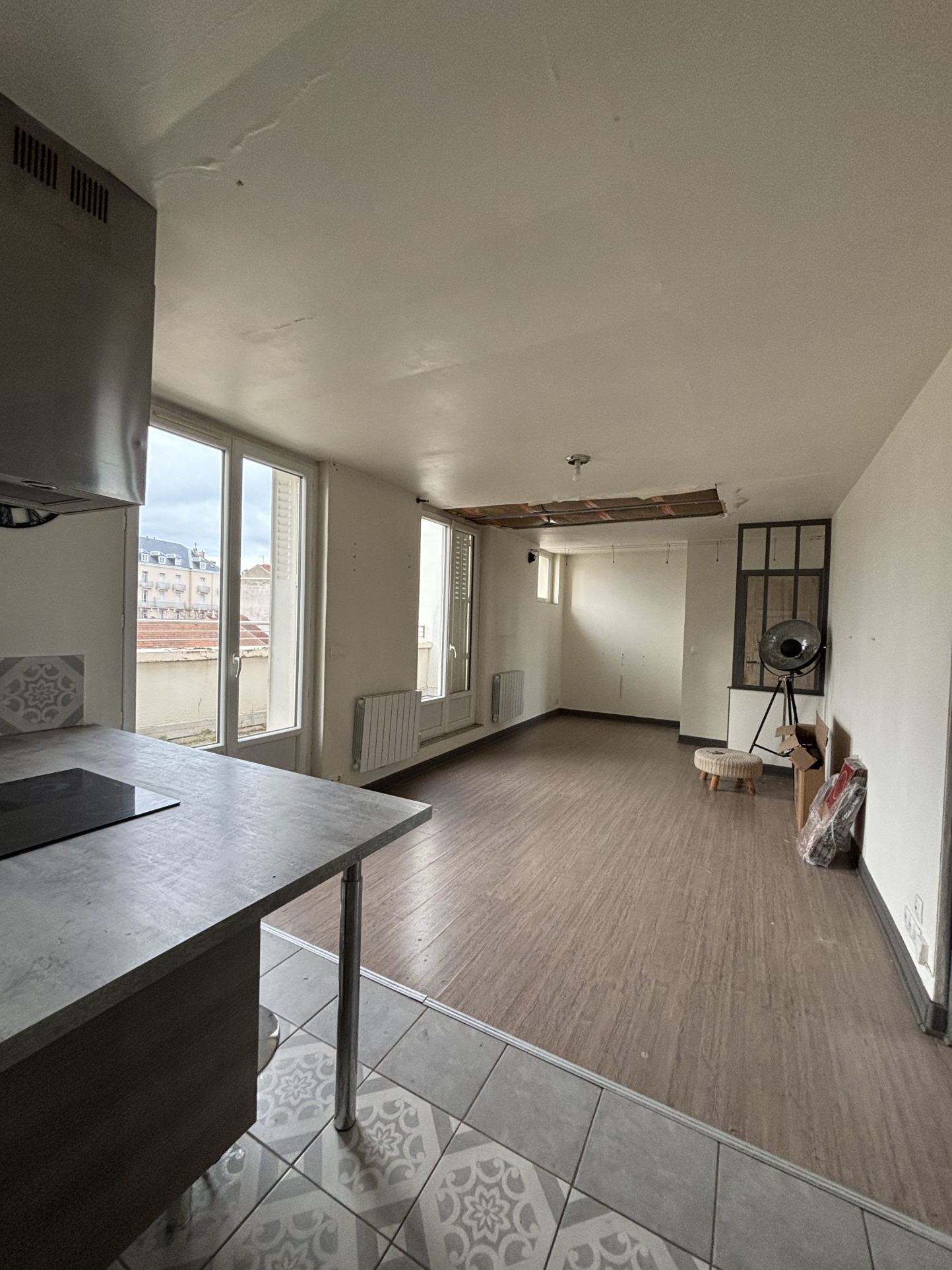 VICHY - QUARTIER THERMAL - APPARTEMENT F3 AVEC TERRASSE En dernier étage sans vis-à-vis, appartement F3 de 57,49m² comprenant une pièce de vie de 30m² donnant sur une terrasse de 22m² (orientée Ouest), cuisine US aménagée, deux chambres, salle de bains, W.C indépendant. Chauffage individuel électrique. Travaux à prévoir DPE EN COURS DE REALISATION